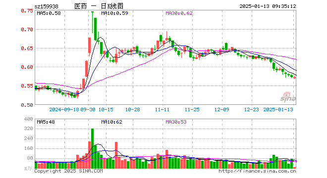 1月13日,医药卫生ETF(159938)开盘跌0.35%,报0.570元。医药卫生ETF(159938)重仓股方面,恒瑞医药开盘跌0.37%,迈瑞医疗跌0.43%,药明康德跌1.37%,片仔癀跌0.61%,爱尔眼科跌0.41%,云南白药跌0.21%,联影医疗涨0.66%,新和成跌0.55%,上海莱士跌0.60%,智飞生物跌0.91%。