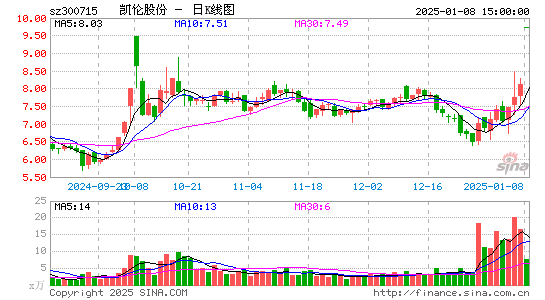 1月8日,江苏凯伦建材股份有限公司开盘涨停,报收于9.74元/股。消息面上,1月7日晚间,凯伦股份发布公告称,公司拟以现金方式收购苏州佳智彩光电科技有限公司(以下简称“苏州佳智彩”)不高于51%的股权。
