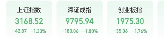 今天,A股调整。截至收盘,上证指数下跌1.33%,深证成指下跌1.8%,创业板指下跌1.76%。