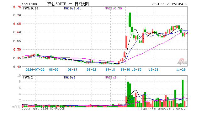双创50ETF(588380)开盘跌0.17%,重仓股宁德时代跌0.66%,迈瑞医疗跌0.32%