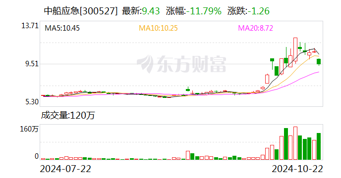10月21日晚间,中船应急发布公告称,公司于近日收到证监会下发的《立案告知书》,因涉嫌信息披露违法违规,证监会决定对公司立案。截至10月22日收盘,公司股价跌幅超10%,报9.43元/股。