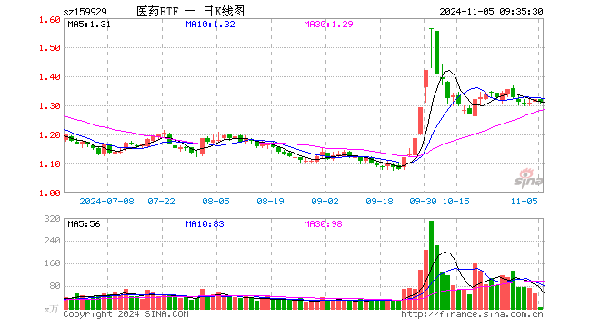 11月5日,医药ETF(159929)开盘跌0.15%,报1.319元。医药ETF(159929)重仓股方面,恒瑞医药开盘跌0.77%,迈瑞医疗跌0.47%,药明康德涨0.08%,片仔癀跌0.42%,爱尔眼科跌0.41%,云南白药跌0.21%,上海莱士涨0.13%,联影医疗跌0.08%,新和成涨0.04%,智飞生物涨0.10%。