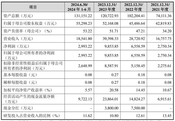 从业绩来看,2021年至2024年上半年,胜科纳米实现营收分别为1.68亿元、2.87亿元、3.94亿元和1.85亿元;同期归母净利润分别为2750.34万元、6558.59万元、9853.85万元和2993.22万元;综合毛利率分别为54.41%、53.84%、54.28%和45.04%。