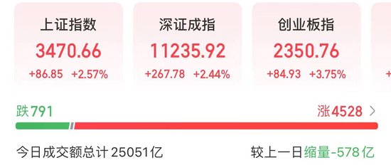 11月7日,大消费+大金融联手发力,A股三大股指低开高走,迎来大涨行情。截至收盘,上证指数上涨2.57%,深证成指上涨2.44%,创业板指上涨3.75%。