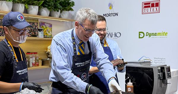 本届进博会,美国食品与农业馆面积扩大,参展商和企业带着牛肉、红酒、马铃薯、棉花、大米、干豆、花旗参、大豆等产品前来。