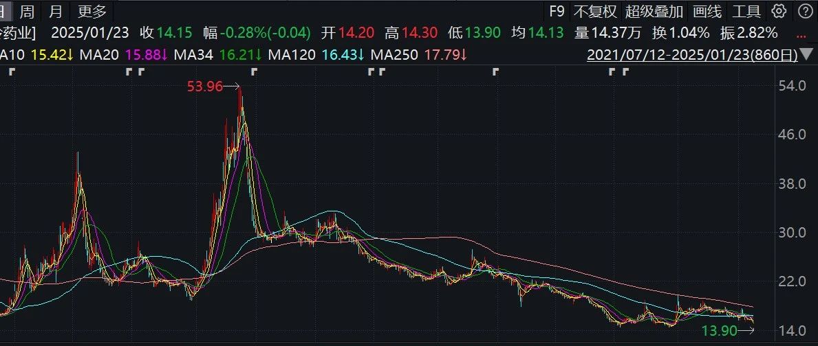 公告发布当日,以岭药业股价应声而跌收盘跌幅为8.8%,14.19元的收盘价也跌破了924行情启动前一日的股价。