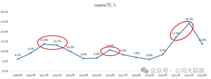 2015-2023年,主营收入CAGR +18%;涤纶长丝产能CAGR +16.4%,两者基本同步。三个集中扩产的时间:2011-12年;2016年;2021-2022年,几乎每次都是行业景气度低点时逆势扩产。这个节奏我们已经很熟悉了。之前接触过的化工企业,多数都有这种成长经历。