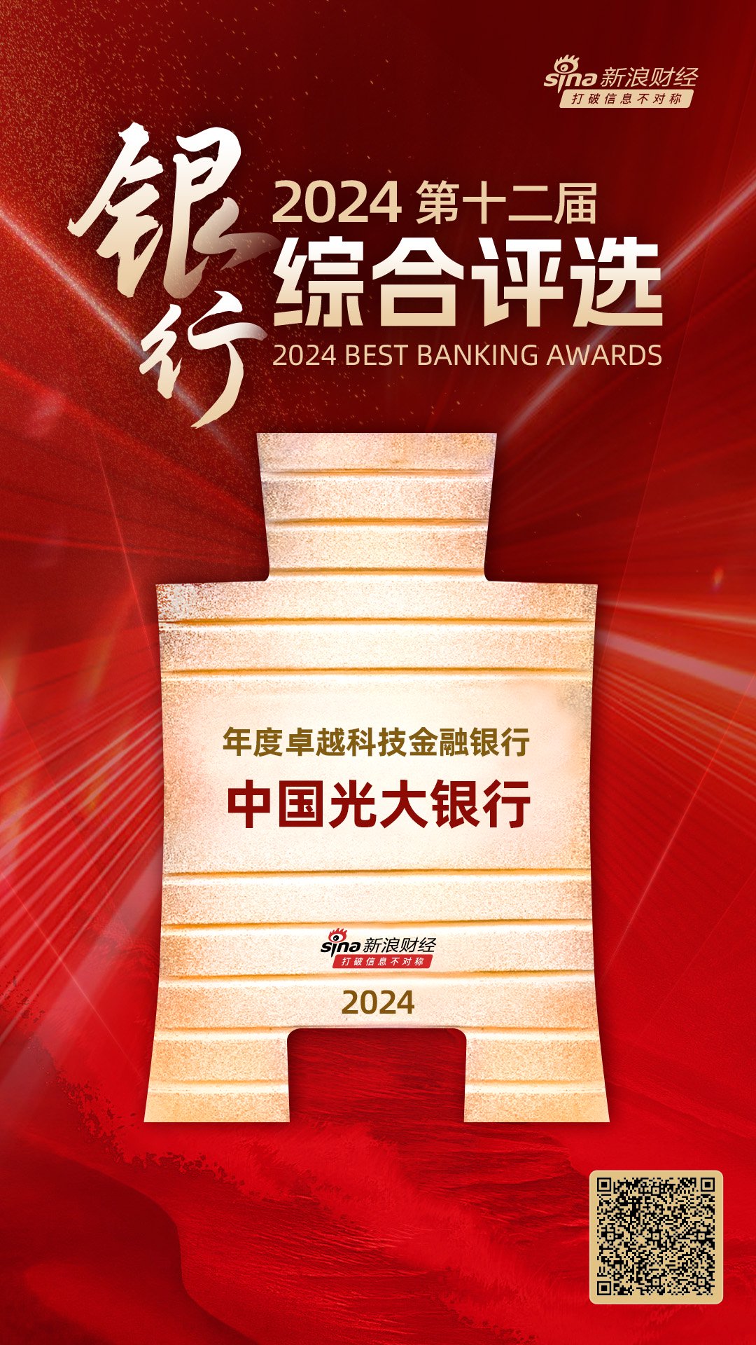 1月23日金融一线消息,由新浪财经主办的“2024(第十二届)银行综合评选”活动获奖名单今日正式揭晓!中国光大银行获评“年度卓越科技金融银行”。