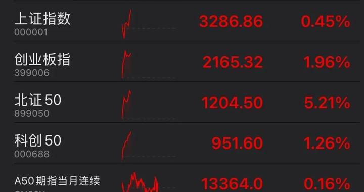A股开盘集体拉升。截至发稿,创业板指涨近2%,北证50涨超5%。