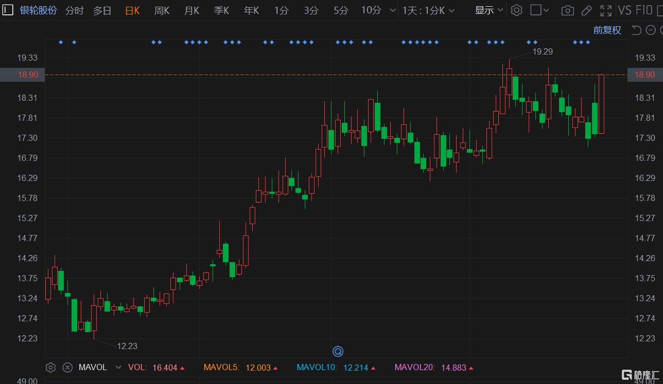 银轮股份(002126.SZ)拉升涨超8%,现报18.88元逼近历史高价,总市值152亿元。公司日前公布上半年净利润2.85亿元,同比增长117.10%。国金证券点评称,公司业绩符合预期,盈利能力持续增强。公司产品延展性强,应用场景多元,有望打开未来发展空间。维持“增持”评级。