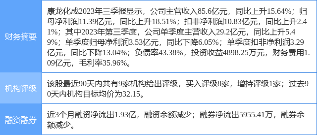 2023年11月8日,浙商证券研究员孙建,郭双喜发布了对康龙化成的研报《康龙化成2023Q3业绩点评:成熟业务净利率提升,CDMO环比恢复》,该研报对康龙化成给出“买入”评级。研报中预计2023-2025年公司EPS为0.86、1.08和1.38元(前次为EPS为1.08、1.38和1.82元/股),2023年11月8日收盘价对应2023年PE为41倍(对应2024年PE为33倍),维持“买入”评级。证券之星数据中心根据近三年发布的研报数据计算,该研报作者对此股的盈利预测准确度为72.6%。