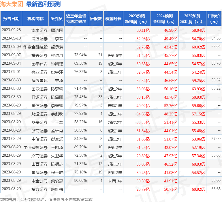 证券之星中心根据近三年发布的数据计算,证券王明琦研究员团队对该股研究较为深入,近三年预测准确度均值高达89.79%,其预测2023年度归属净利润为盈利31.25亿,根据现价换算的预测PE为24.09。