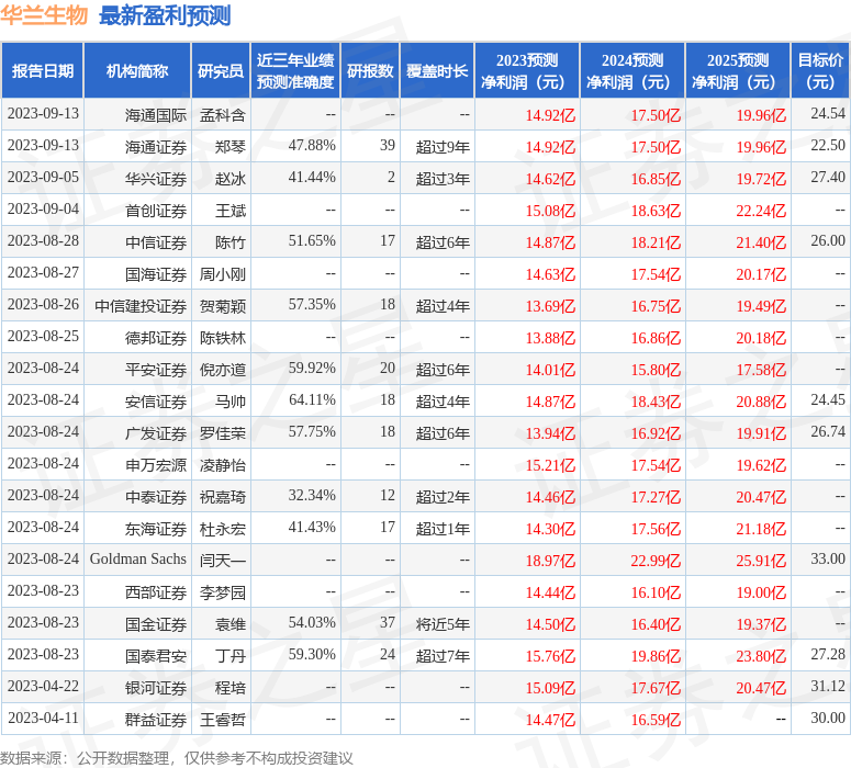 最新盈利预测明细如下: