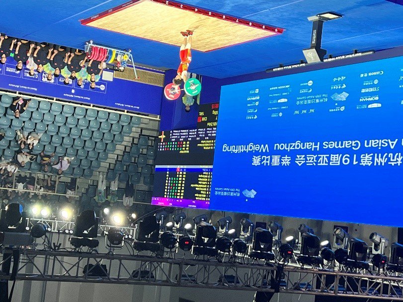 随着举重比赛正式开始,运动员们逐一登场。赛场内,举重运动员后方的大屏幕上,“太平洋保险”的LOGO赫然在目。现场中国太保亚运观赛团心潮澎湃,为中国太保自豪,为亚运健儿喝彩。