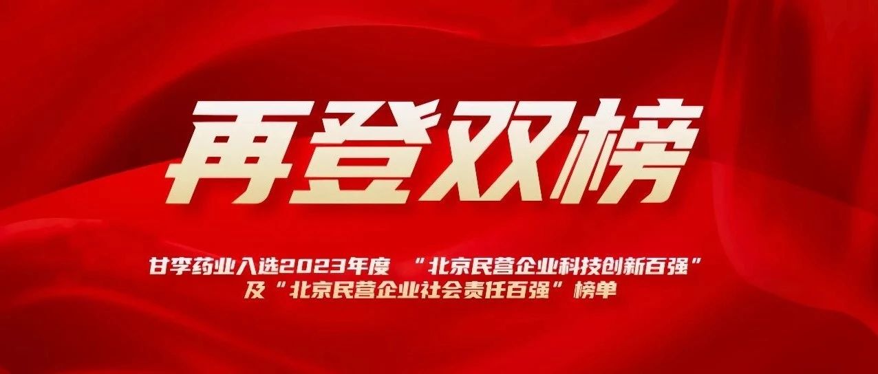再登双榜 | 甘李药业入选2023年度 “北京民营企业科技创新百强”及“北京民营企业社会责任百强”榜单