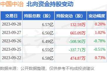 中国中冶(601618):9月28日北向资金增持132.59万股