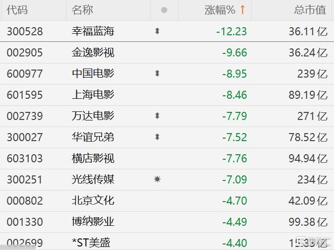 A股异动丨影视动漫概念股集体下挫,金逸影视逼近跌停