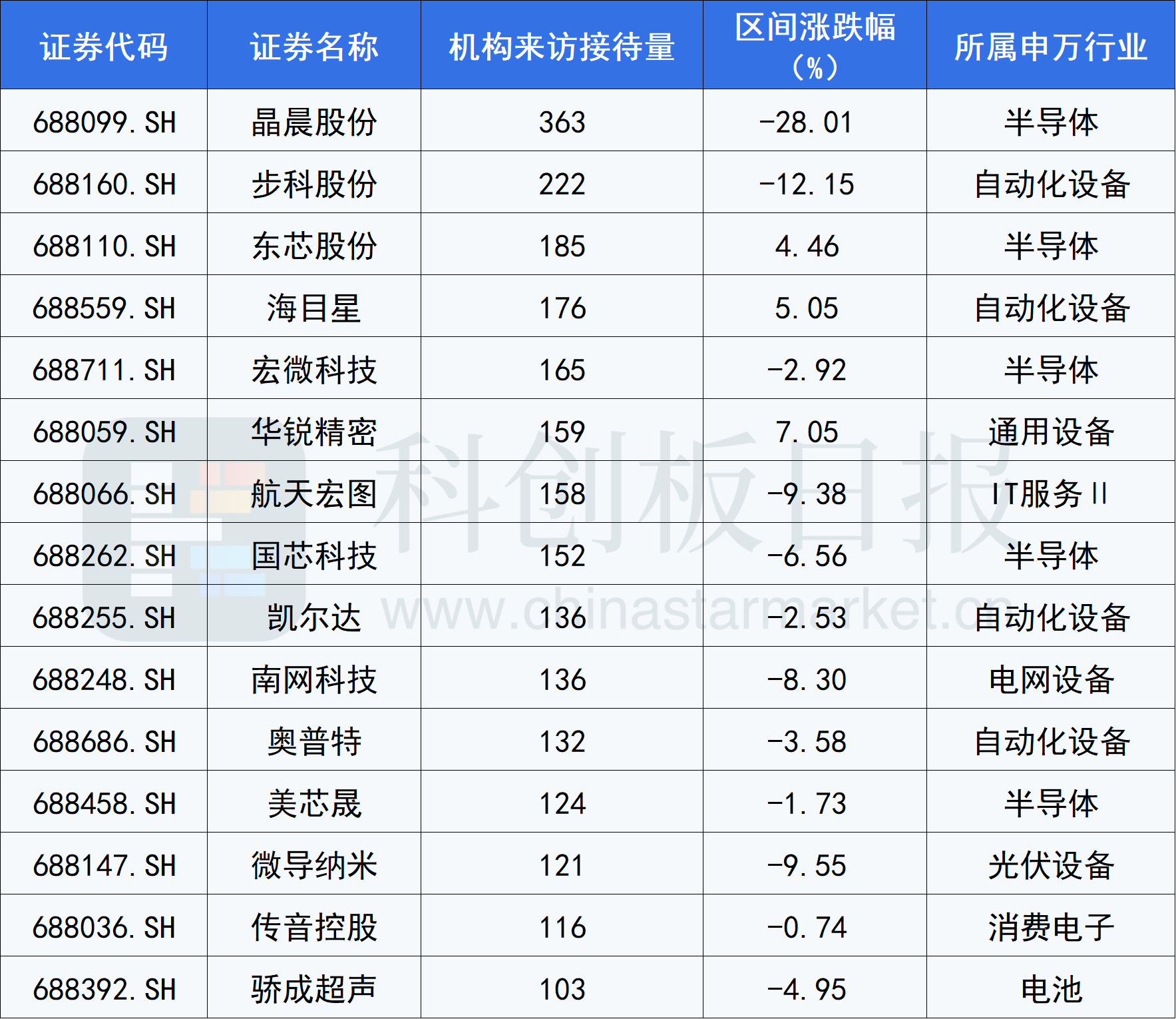 据《科创板日报》统计,自9月以来,接受机构调研数量靠前的科创板上市公司主要有: