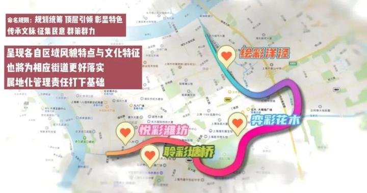 陆家嘴“焕彩水环”二期工程在一期打通堵点断带的基础上进行了品质提升,并且为了呈现打通的四个街道区域的风貌特点与文化特征,在广泛征询市民意见后对陆家嘴水环4个片区进行了命名。
