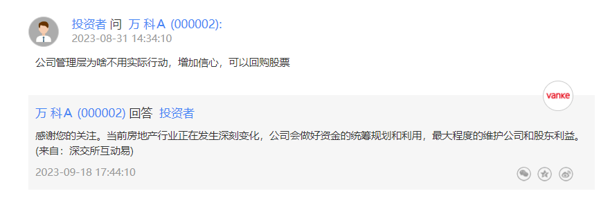 万科A:将做好资金统筹规划和利用,最大程度维护公司和股东利益