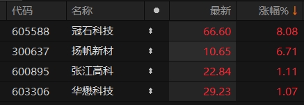 上证报中国证券网讯 9月20日午后,光刻机概念股回暖。13时39分,冠石科技涨超8%,扬帆新材涨超6%,张江高科、华懋科技等短线拉升。