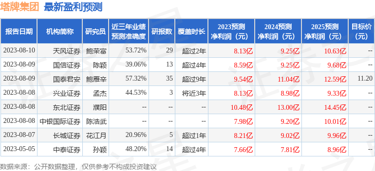 以下是详细的盈利预测信息:
