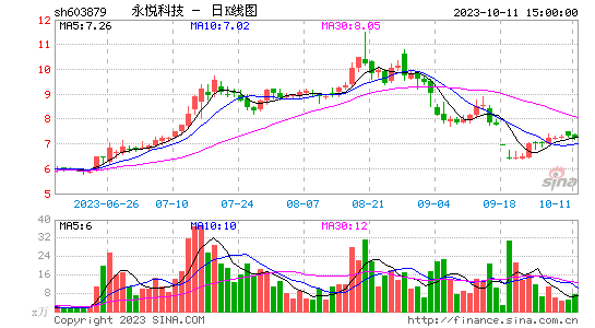 二级市场上,自今年8月18日以来,永悦科技股价迎来一波下跌。经统计,在8月18日-10月11日这33个交易日,永悦科技股价区间累计跌幅达31.07%,同期大盘跌幅2.68%。截至10月11日收盘,永悦科技股价报7.21元/股,总市值为26.01亿元。