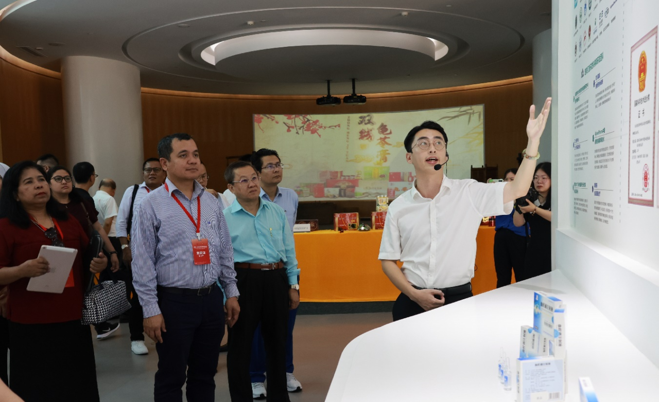 东盟知识产权研讨班是第十四届中国—东盟知识产权局局长会议系列活动之一,也是第20届中国—东盟博览会框架下的一项重要活动。研讨班一行参观了中恒集团展示馆,工作人员详细介绍了中恒集团的发展历程、科技创新、产品发展等方面的内容,重点介绍了中恒集团近年来在知识产权创造、运用、保护和管理方面的实践和成果。研讨班一行还参观了国家地理标志保护产品——双钱龟苓膏的生产线,了解了龟苓膏产品的制造工艺和发展历程,更加深入地了解了中恒集团的企业文化和产品底蕴。