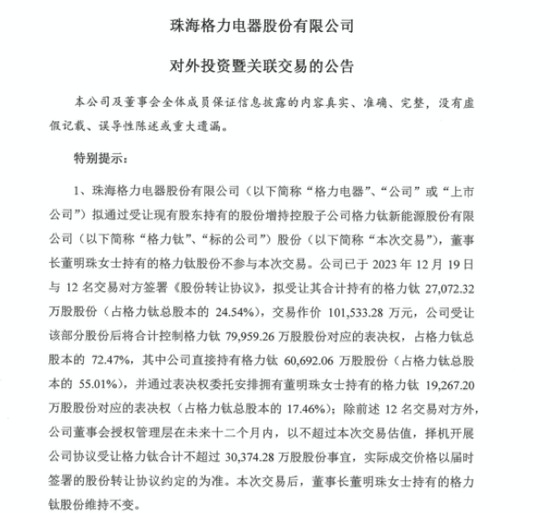 值得一提的是,格力方面还透露出要持续增持格力钛的想法。公告称,除了上述12名股东外,公司将继续与其他格力钛股东就受让其持有的格力钛股份(不包括董事长董明珠女士持有的格力钛股份)进行沟通。