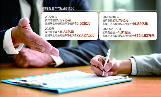 根据华创云信介绍,思特奇是ICT(信息与通信技术)行业软件产品及服务的供应商。2022年末、2023年9月末,思特奇资产总额分别为25.27亿元、24.75亿元,归属于上市公司股东的净资产分别为15.52亿元、14.82亿元;2022年度及2023年1~9月,思特奇分别实现营业收入8.34亿元、4.01亿元,分别实现归属于上市公司股东的净利润1723.27万元、-6724.53万元。