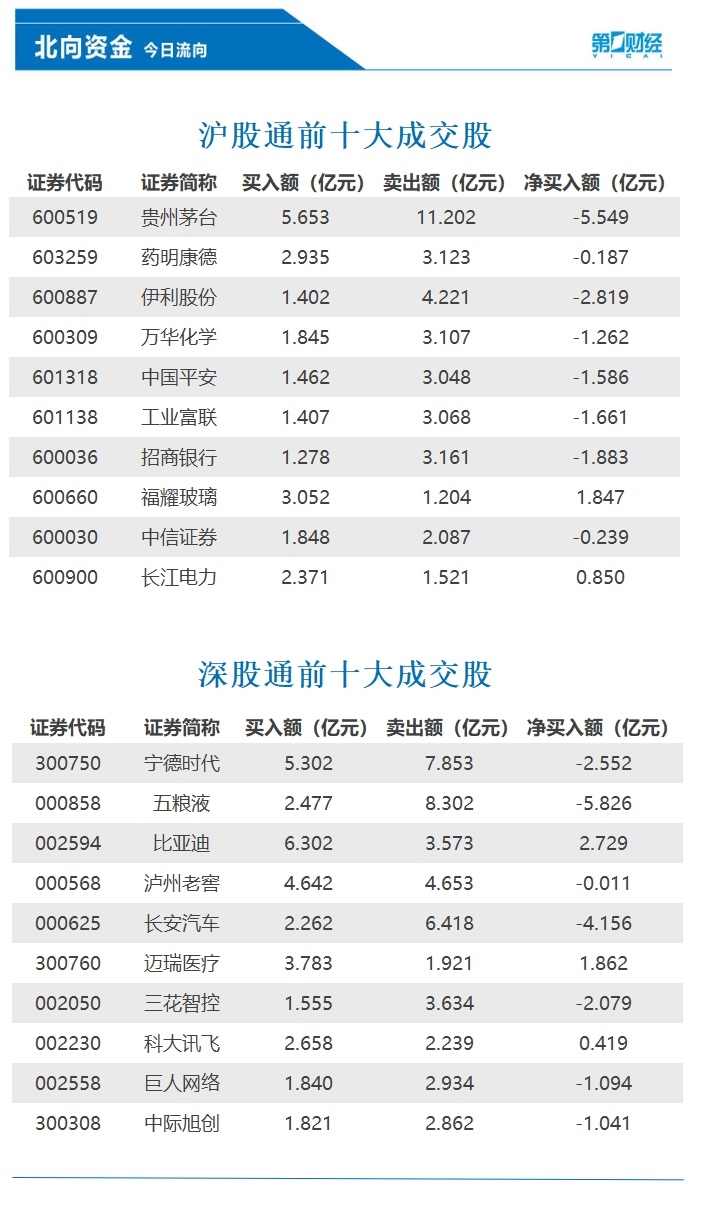 北向资金净卖出逾95亿元,五粮液、贵州茅台遭大幅抛售
