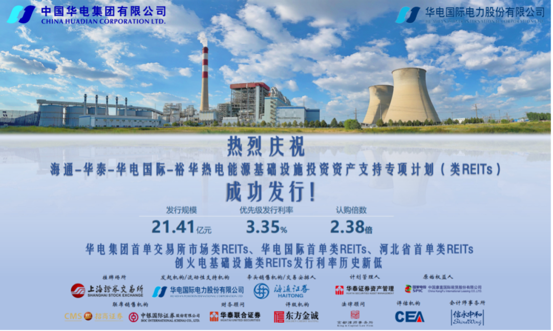 海通证券助力华电国际成功发行首单基础设施类REITs