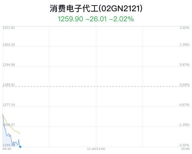 04月10日,消费电子代工概念盘中跳水,截至09点53分,消费电子代工概念整体指数下跌2.02%,报1259.900点。