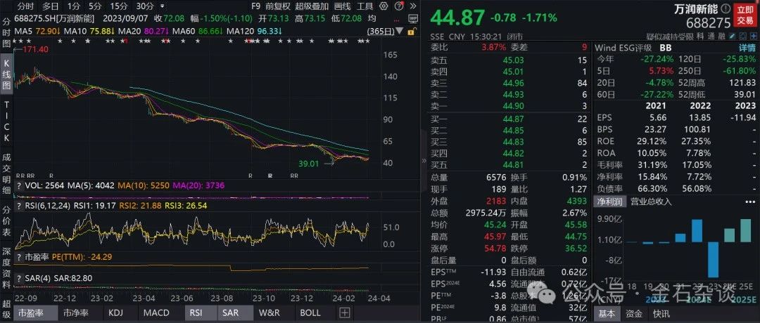 万润新能,主要从事锂电池正极材料的研发、生产、销售和服务,主要产品包括磷酸铁、磷酸铁锂与锰酸锂等。2022年9月登陆科创板,彼时发行价高达299.8元,为A股史上第二贵新股,中一签要交15万,但首日收报143.15元,股价腰斩,直接让大家一签亏损七八万。
