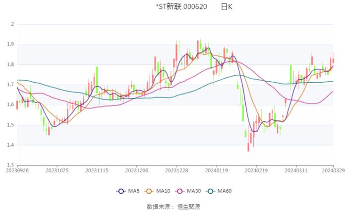 以3月29日收盘价计算,*ST新联目前市盈率(TTM)约为30.54倍,市净率(LF)约为2.0倍,市销率(TTM)约为2.77倍。