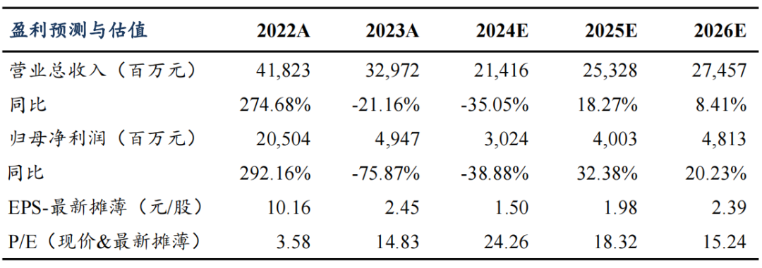 盈利预测与投资评级:考虑23年销量超预期之后上修后续销量预期,我们上调2024-2025年盈利预测,我们预计2024-2026年公司归母净利润30.2/40.0/48.1亿元(原预期24-25年为30.2/35.1亿元),同比-39%/+32%/+20%,对应24-26年24x/18x/15xPE,维持“买入”评级。
