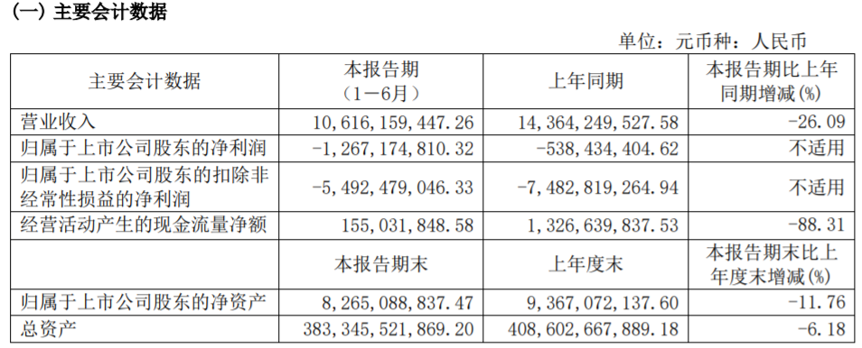 8月30日,华夏幸福(SH600340,股价2.41元,市值94.32亿元)发布的2023年中期业绩报告显示,上半年实现营业收入106.16亿元,同比下降26.09%;销售额48.27亿元,同比下降34.07%;归属于上市公司股东的净利润-12.67亿元,经营净现金流1.55亿元。