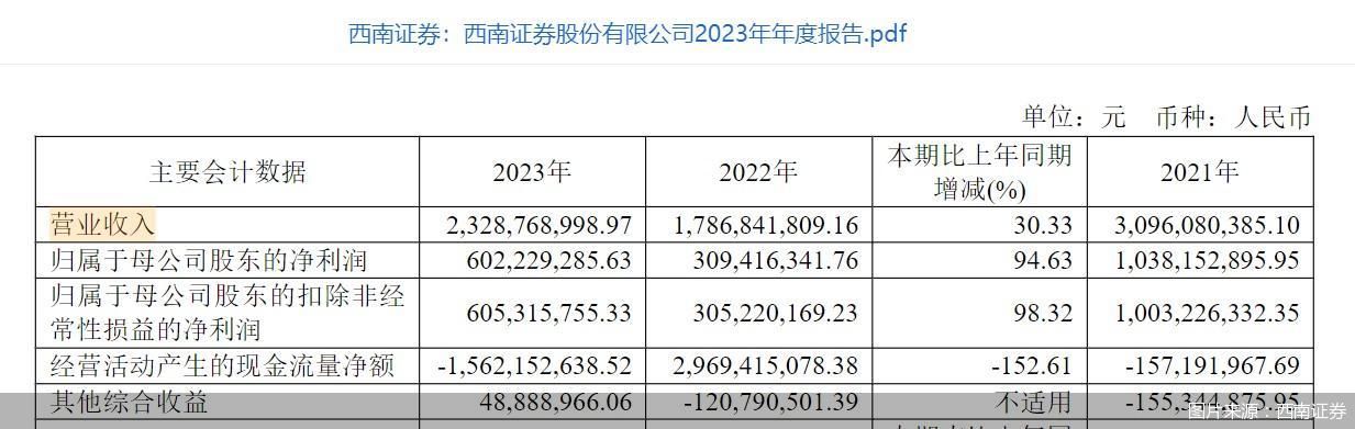 西南证券:2023年实现归母净利润6.02亿元 同比增长94.63%