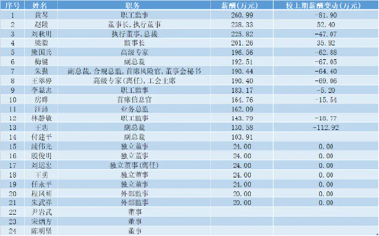 从披露的高管薪酬情况来看,光大证券共计有14位高管薪酬超过百万元。2023年董监高薪酬总额为2744.61万元。具体来看,最高的是职工监事黄琴,薪酬260.99万元,较上期减少81.90万元。其次是董事长兼执行董事赵陵,薪酬238.33万元,较上期增加52.40万元。执行董事兼总裁刘秋明,薪酬225.82万元,排第3位,较上期减少47.07万元。监事长梁毅,薪酬201.26万元,排第4位,较上期增加35.92万元。这四位高管薪酬均在200万元以上。