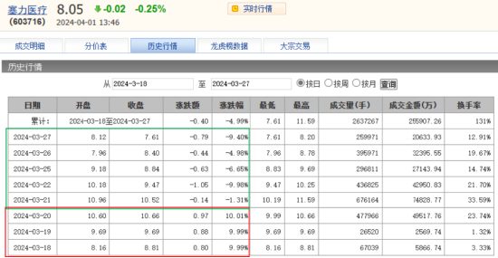近期,AI板块巨头公司英伟达认证“下一个黄金赛道”或是AI医疗,引发投机资金疯狂追逐AI医疗相关公司,塞力医疗也成了AI医疗热门股。作为一家市值不高的小微盘公司,近期塞力医疗股价波动较大,3月18日至3月20日股价收获3连板。之后,又来了一波暴跌行情,仅3月21日至3月27日期间跌幅达32.32%。