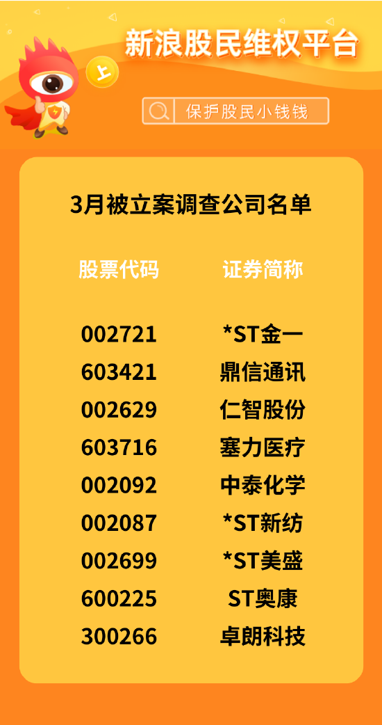 3月股民维权月报:9家上市公司被立案调查,飞乐音响超2000名投资者获赔3.29亿元
