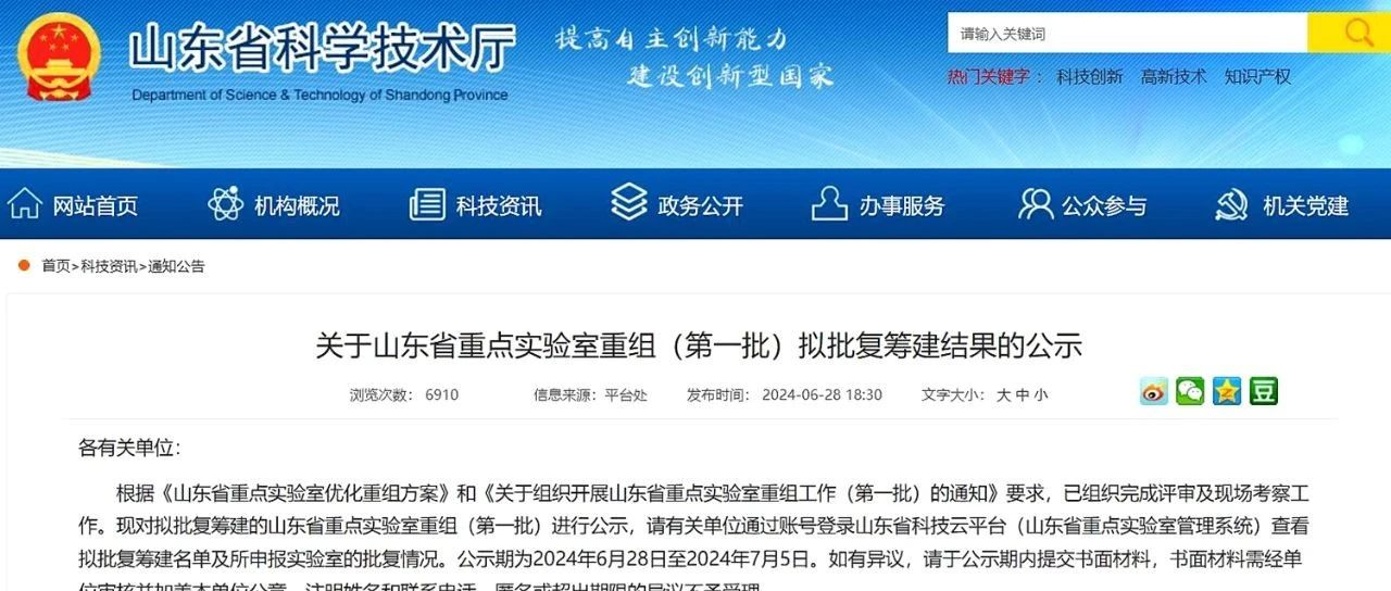 近日,山东省科技厅发布《关于山东省重点实验室重组(第一批)拟批复筹建结果的公示》名单,由山东金城医药集团股份有限公司牵头,济南大学和山东理工大学联合建设的山东省抗传染病药物技术重点实验室凭借卓越的科研实力和创新潜力入围首批省重点实验室名单,成功跻身山东省“1313”实验室体系。