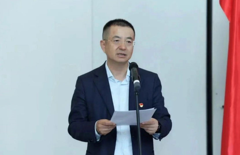 7月18日姜诚君在海通证券“廉洁文化作品展”上致辞。图片来源:海通证券党建