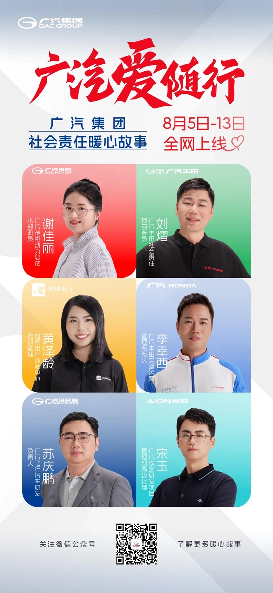 其中,广汽集团在对口帮扶地区贵州毕节,以校企合作的模式设立“广汽班”,为更多山区学子搭建追梦的坚实平台,“追光”女孩用知识改变命运,加入广汽传祺。广汽埃安以研发昊铂SSR为引领,从研发、设计、试制验证、智造、产业链等领域,打开中国超跑新格局。广汽本田坚守“为了所有人的安全”的初心,依托喜悦安全驾驶中心打造安全科普教育活动,守护安全出行每一程。广汽丰田通过“一路青山·生机森林”环保公益项目,用实际行动守护地球家园的多样与和谐。如祺出行以司机见义勇为的正能量故事,诠释安全、便捷、高品质出行服务。广汽研究院以实现“飞天之梦”为灵感,重点投入飞行汽车领域研发,不断探索与描绘未来出行的无限可能。