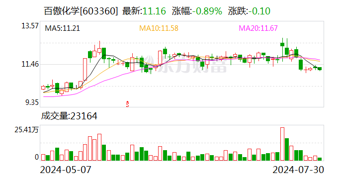 公开数据显示,2021年至2023年,百傲化学分别实现净利润2.50亿元、4.03亿元和3.28亿元。截至今年一季度末,百傲化学货币资金5.19亿元,资产负债率16.87%。