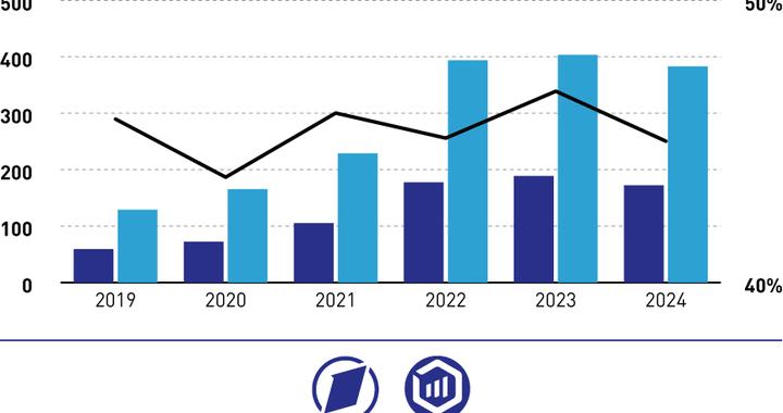 投融资活动活跃是新药研发回暖的重要保障。2023年底以来,全球投融资环境出现改善迹象,美股生物科技公司融资并购活动开始频繁启动。据BioWorld报告,今年二季度全球新兴生物科技融资额达到229亿美元,较去年同期增长32%;上半年生物科技融资额约为700亿美元,几乎等同于整个2023年总和。