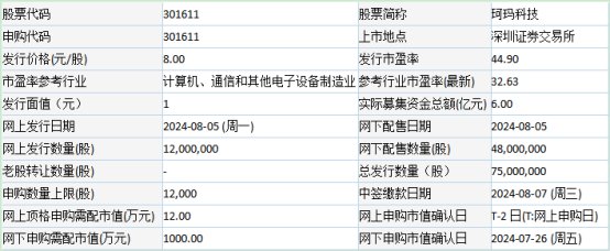 珂玛科技于2024年8月2日披露的首次公开发行股票并在创业板上市发行公告显示,公司本次募投项目预计使用募集资金为90,000.00万元。按本次发行价格8.00元/股计算,公司预计募集资金总额为60,000.00万元,扣除发行费用约8,698.76万元(不含增值税)后,预计募集资金净额约为51,301.24万元,如存在尾数差异,为四舍五入造成。本次发行存在因取得募集资金导致净资产规模大幅度增加对公司的生产经营模式、经营管理和风险控制能力、财务状况、盈利水平及股东长远利益产生重要影响的风险。