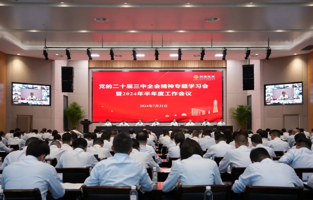 章启诚作了题为《正确处理好“六对关系”,以改革创新推动安全可持续高质量发展》的讲话。他指出,上半年,公司上下锚定“打造一流现代投资银行”总目标,聚焦“服务大局、争创一流、除险保安”三大总任务,深化“四型财通”建设,全企一体、团结奋进,取得了积极成效。下一步,要提升站位、把握大势、着眼全局,切实学习贯彻落实好党的二十届三中全会精神,用好全面深化改革方法论,着力推进“四型财通”建设提质增效,在服务三个“一号工程”“十项重大工程”中展示财通更大的新作为、新贡献。一要坚定服务创新首位战略,“科创型财通”建设要进一步提质增效,更好服务数字经济创新提质“一号发展工程”。要聚力用好“投行+投资+财富”三驾马车的综合金融服务工具箱,聚力打好科创园区综合金融服务样板,聚力陪好科创企业全生命周期成长。二要坚定秉承以客户为中心理念,“服务型财通”建设要进一步提质增效,更好服务营商环境优化提质“一号改革工程”。要着力推动“以牌照为中心”向“以客户为中心”转型,推动单兵独立式服务向集团军集成式服务转型,推动单一机构服务向多元生态合作服务转型。三要坚定立足“做浙商浙企自己家的券商”的特色,“平台型财通”建设要进一步提质增效,更好服务“地瓜经济”提能升级“一号开放工程”。要聚焦服务浙商浙企,深入推进战略合作一本账机制、分公司综合化改革和“五大业务总部”建设落地见效。四要坚定“争创一流投行”总目标,“变革型财通”建设要进一步提质增效,更好提升服务三个“一号工程”的能力水平。要加快打造一流党建统领力,提升一流风险控制力和一流数智引领力,压实清廉建设之责,弘扬勤廉并重之风。