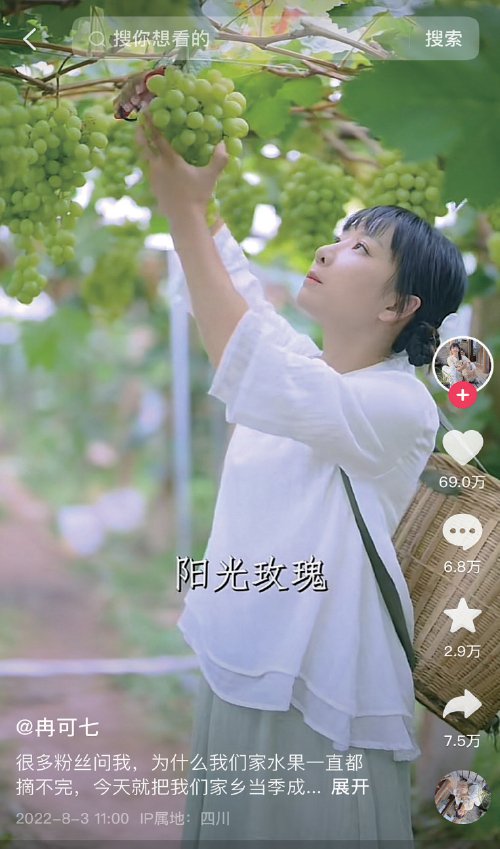 同样,冉可七的家乡“一年四季都没有水果空档”,她的视频里,清脆李、青脆李、冰糖李……一年四季水果不断供。她把一个个几乎只有在她的家乡才有的小众水果打造成“爆款”,让千里之外的消费也能品尝到不一样的“野味”。