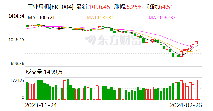 2月26日早盘开盘后,通用机械、运输设备等板块就大幅高开或是高开高走,截至上午10点左右,掀起涨停潮,超20股涨停或涨超10%。
